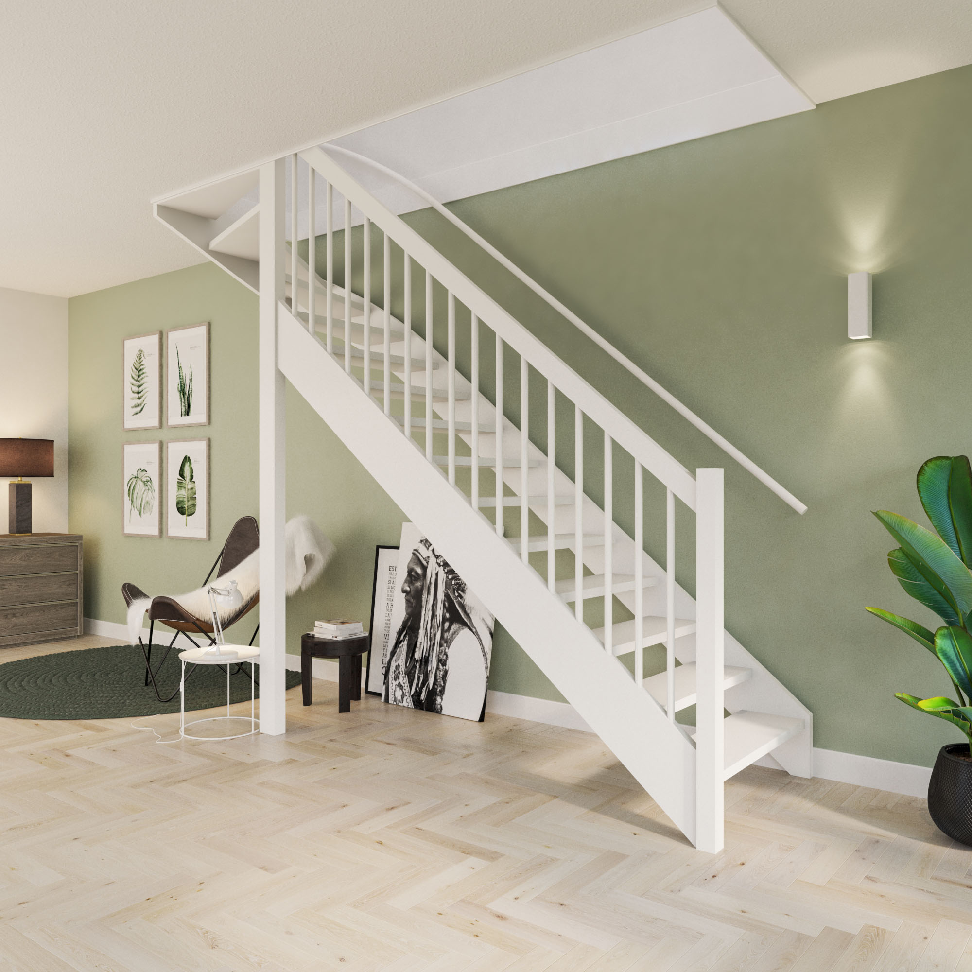 - Combineerbaar met elke trapvorm: rechte trap, kwartslag of s-vorm